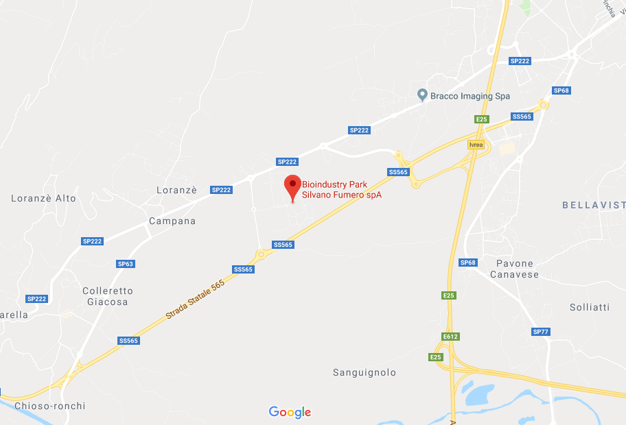 Bioindustry Park is located in Colleretto Giacosa, a near Ivrea, the main town of the Canavese area, located near Turin and on the highwais A4 / A5 that connect Torino, Milano ), and the Alpine tunnels to France and Switzerland (Mont Blanc, Gran San Bernardo, and Frejus).